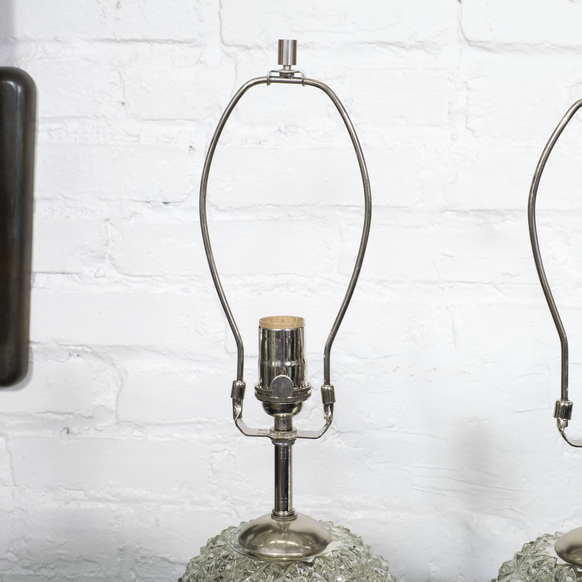 Pair of diamond patterned spherical mercury glass lamps