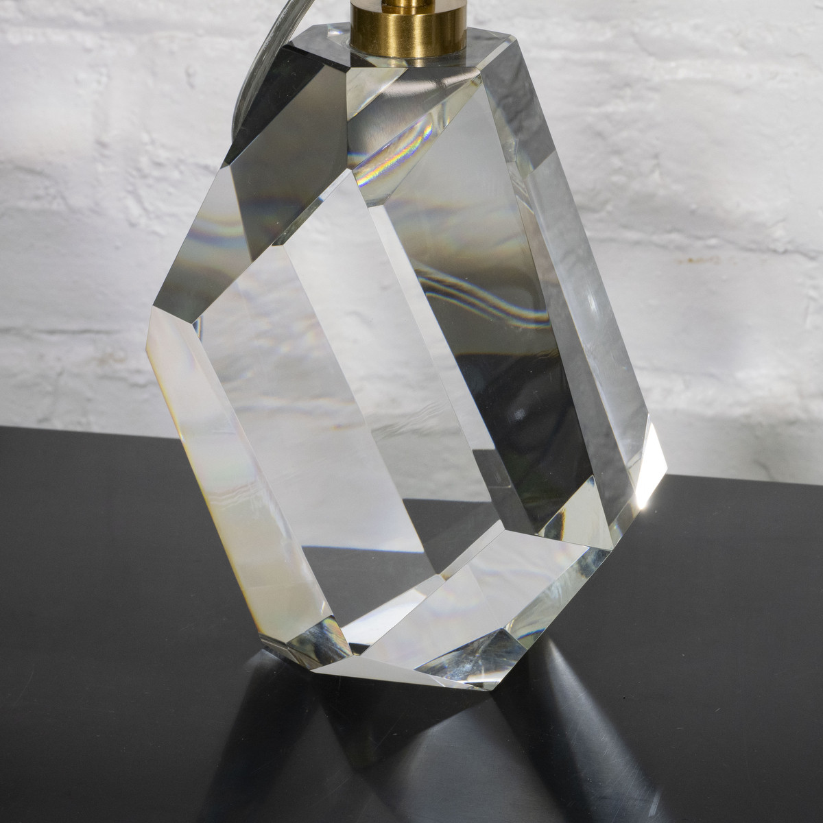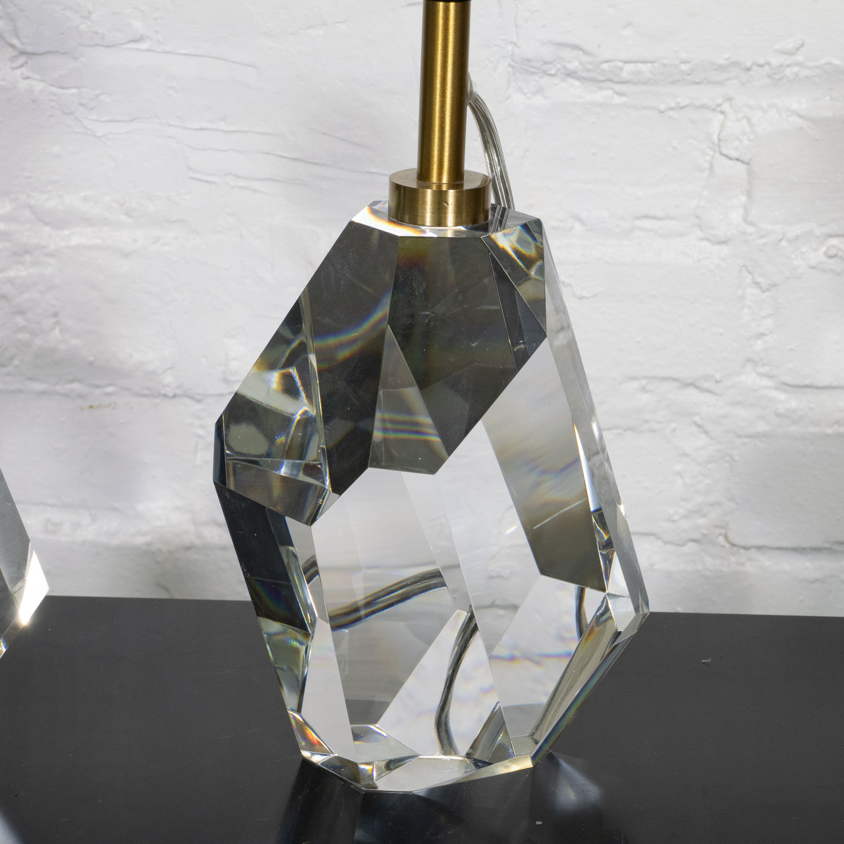 Pair of crystal Halcyon table lamps by Kelly Wearstler. Height measured to top of socket. Body measure 7" high.