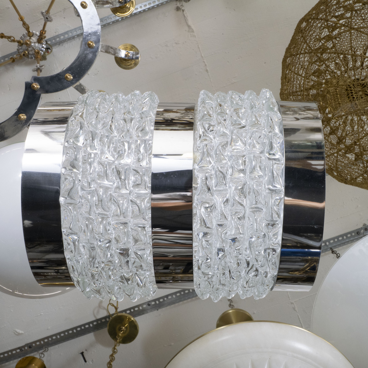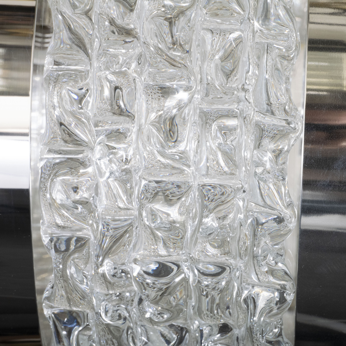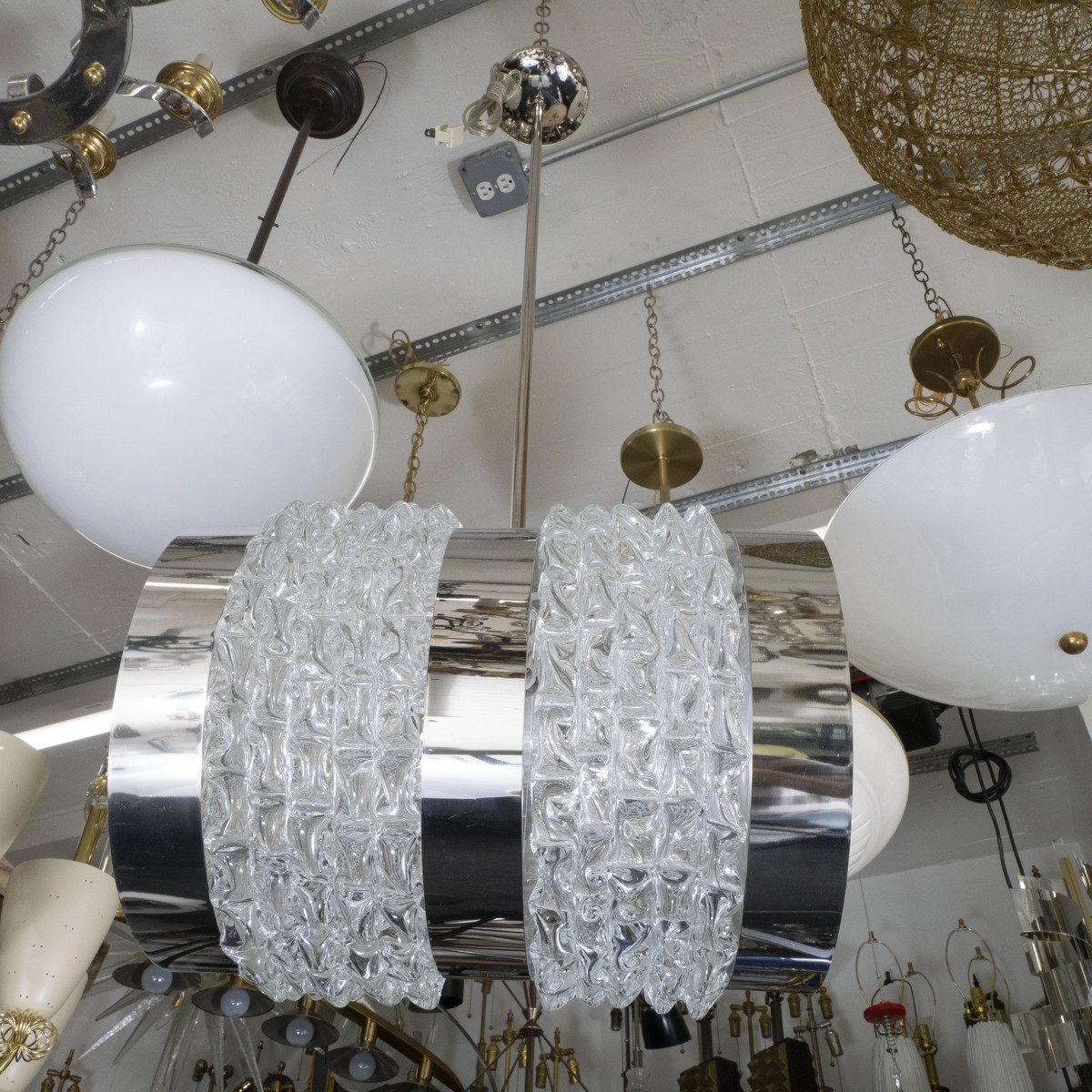 Barrell-shaped textured Murano glass pendant with polished nickel hardware.