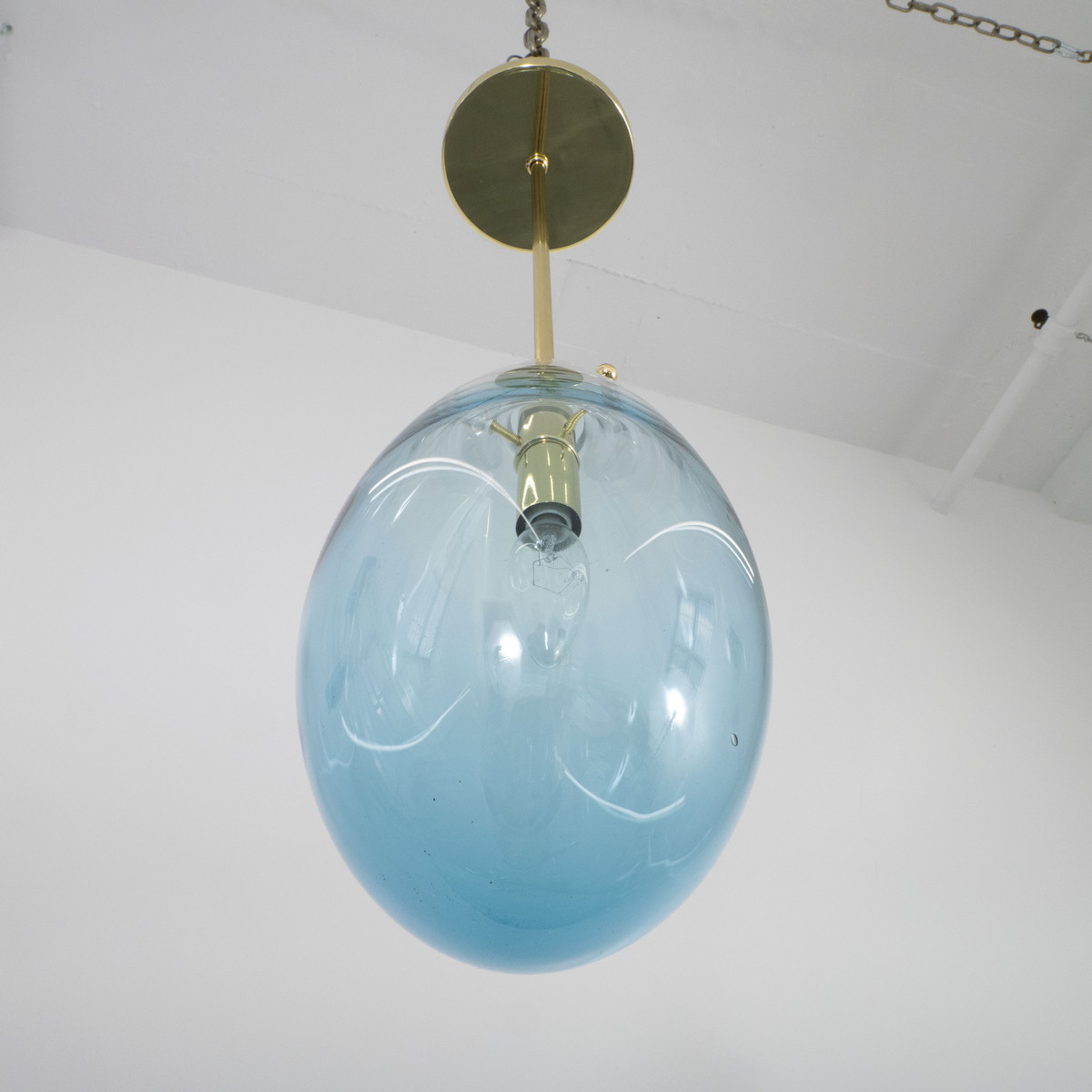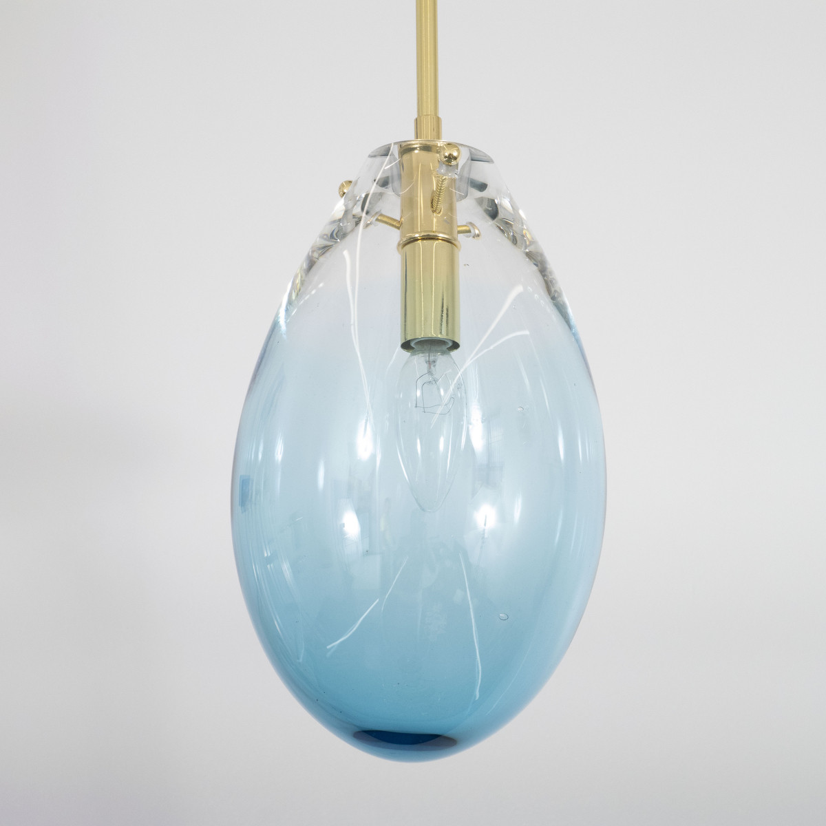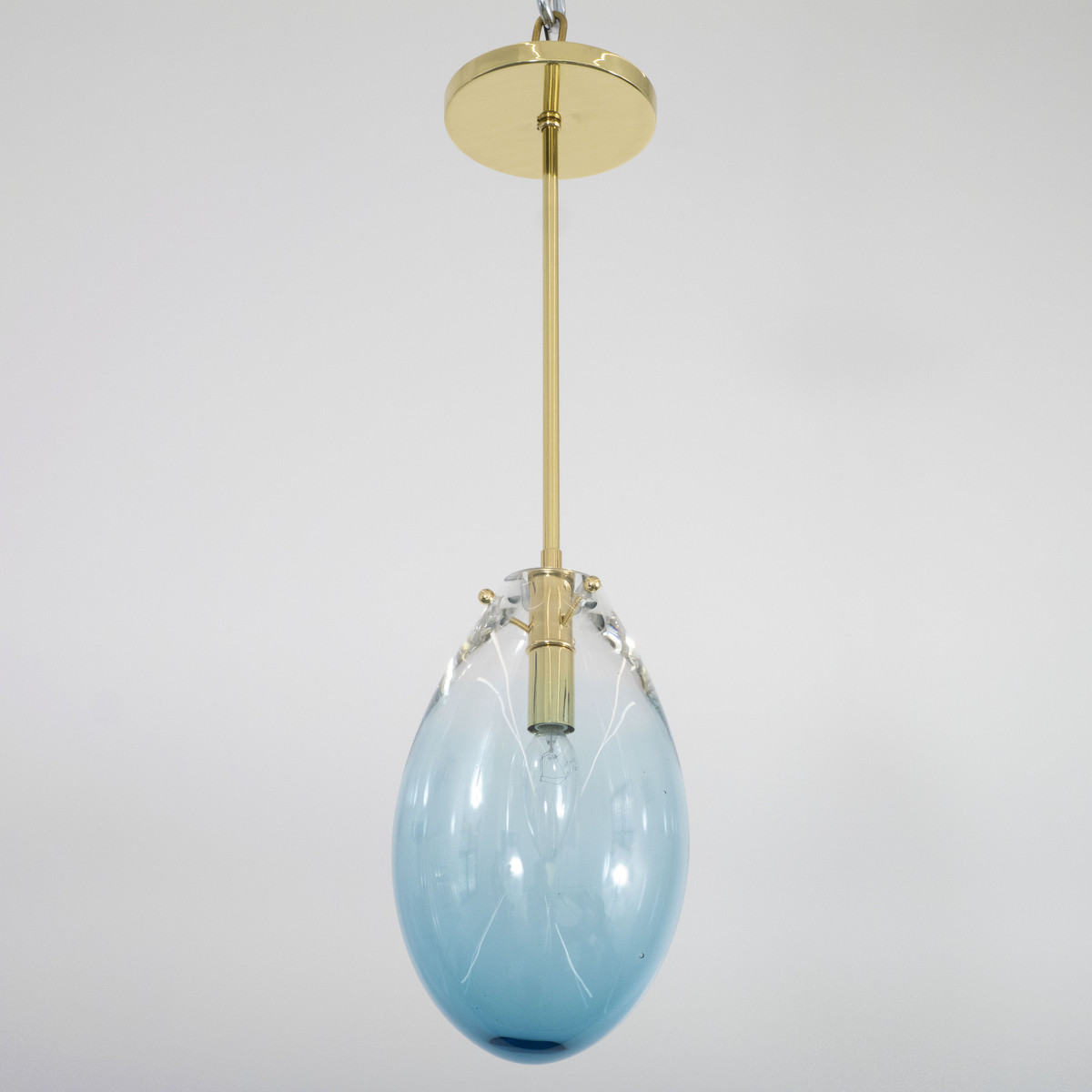 Blown blue Murano glass pendant with brass hardware.
