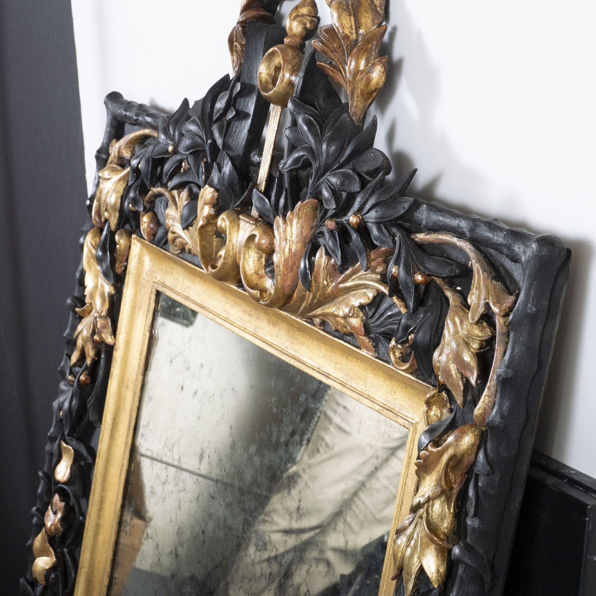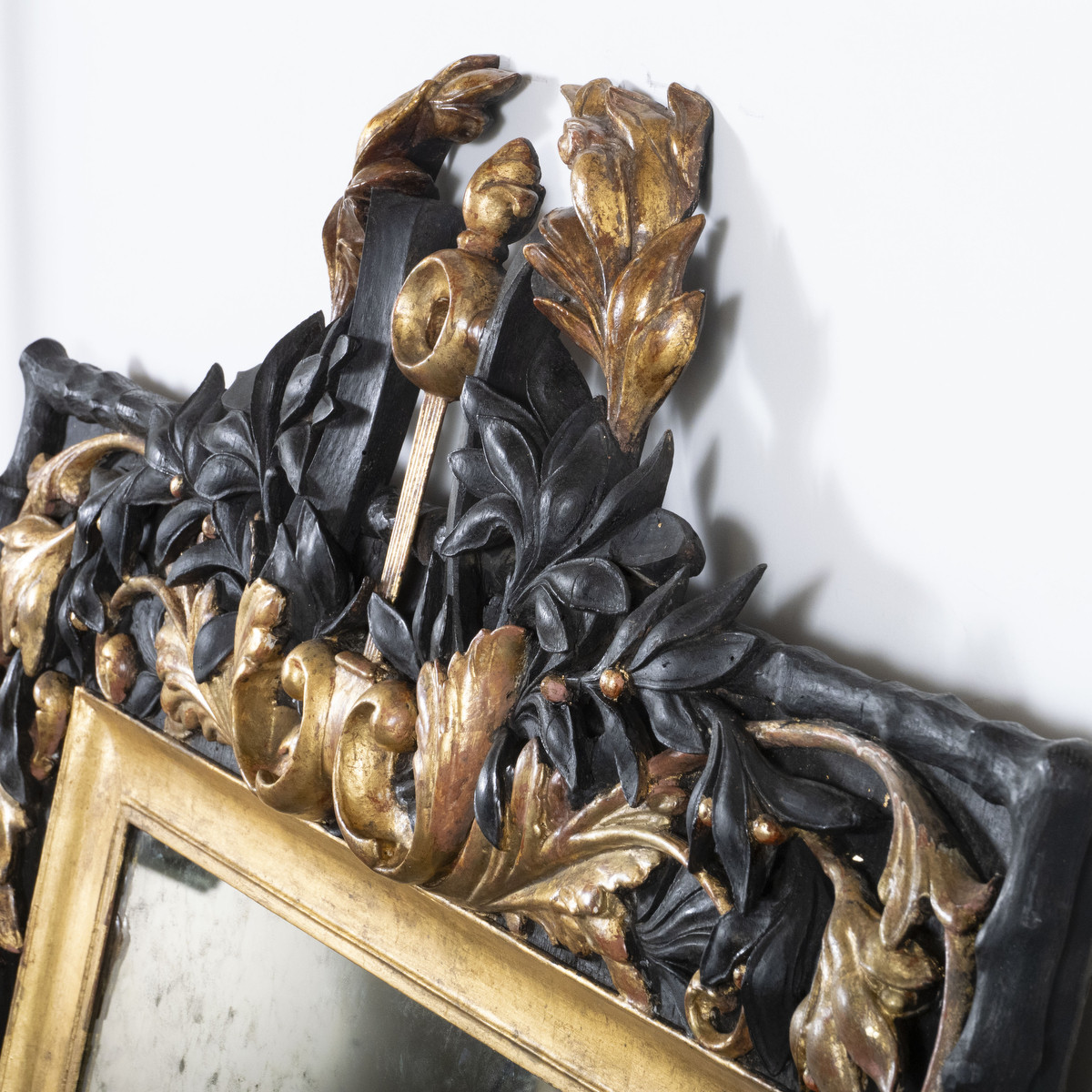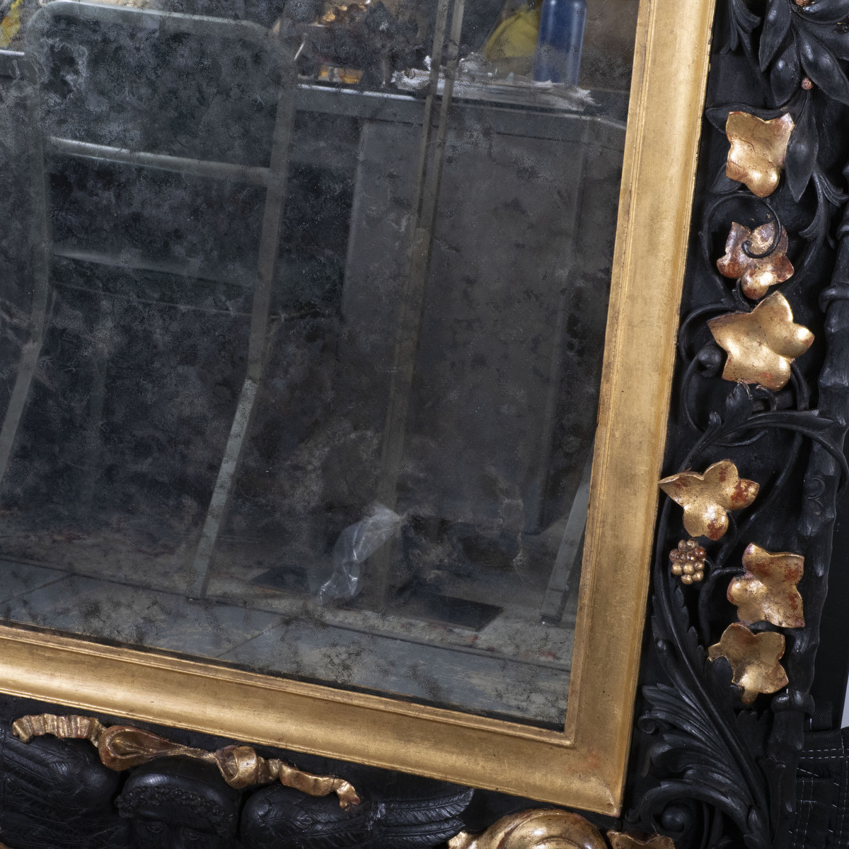 Gilded and ebonized oak Baroque mirror