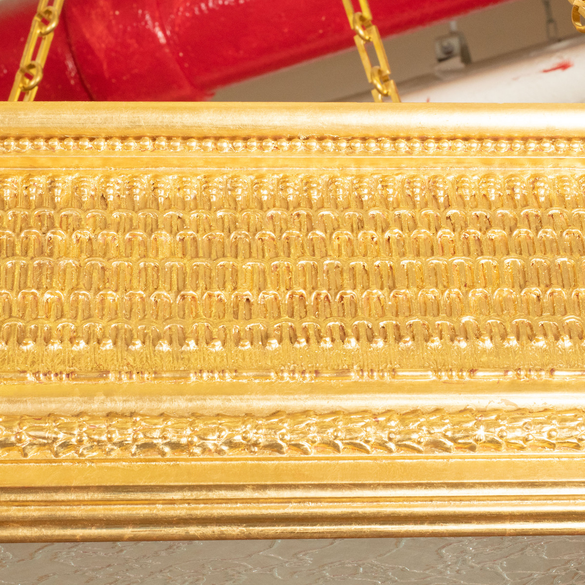 22k gold giltwood woodcarving pendant by master woodworker Carlos Villegas. Frame motif inspired by Stanford White antique frame.