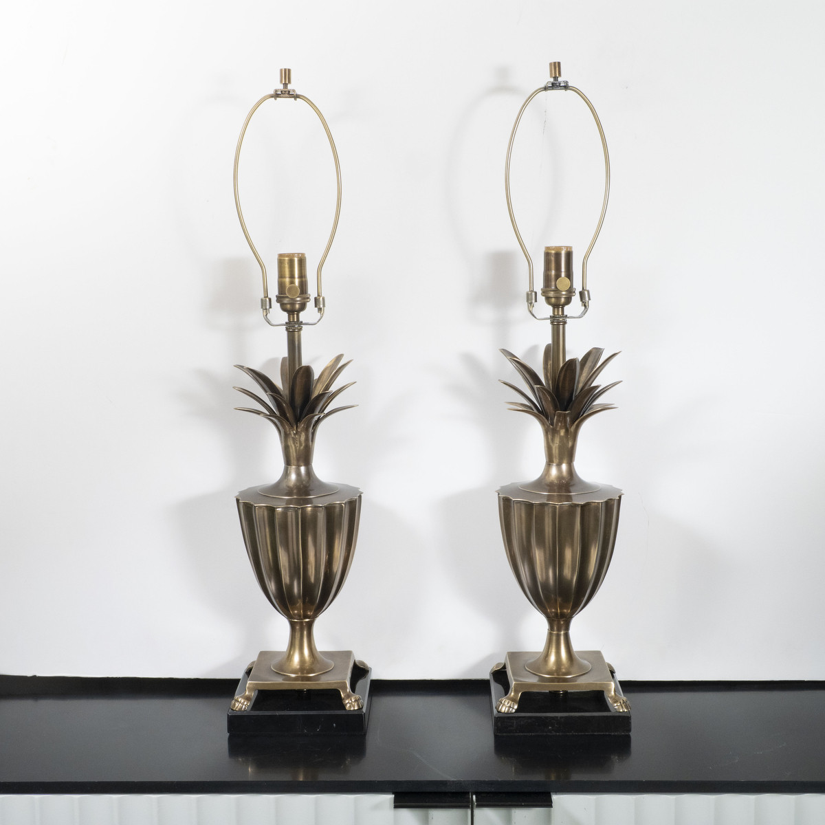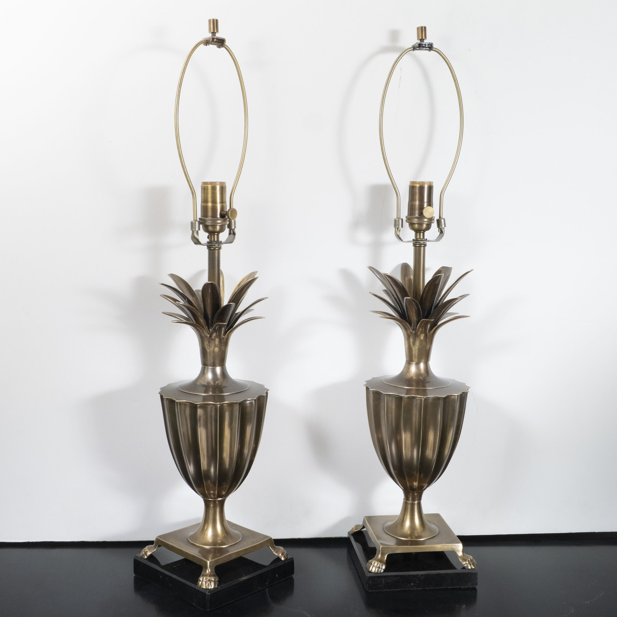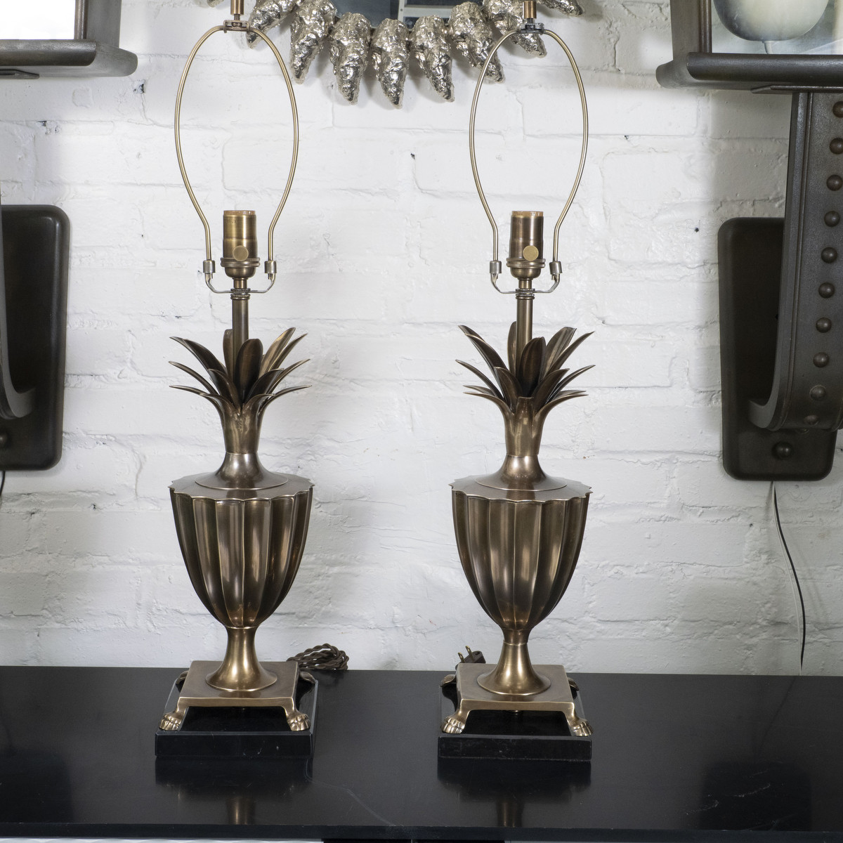 Pair of brass pineapple table lamps by Frederick Cooper.