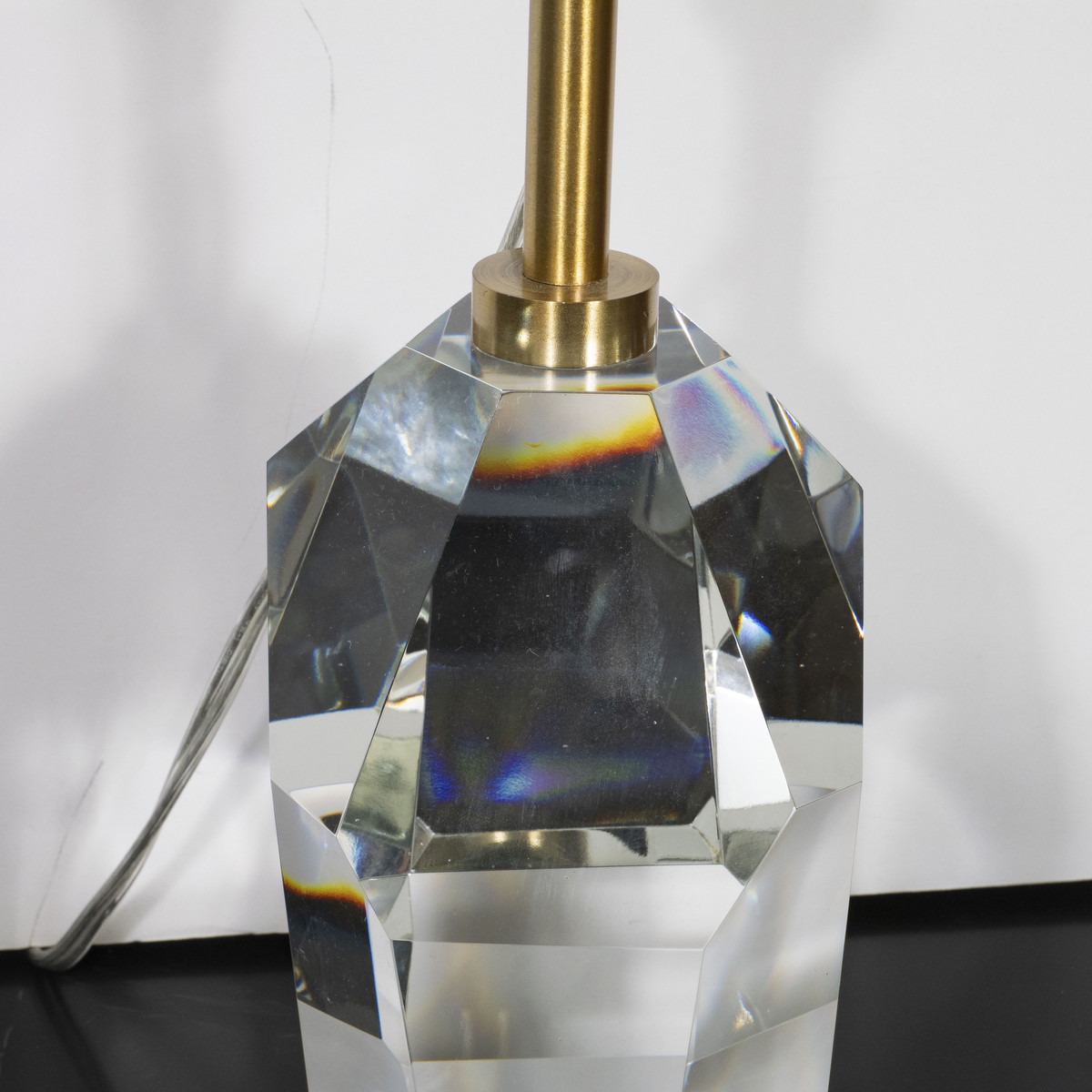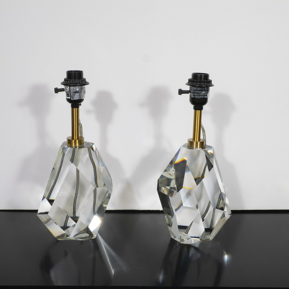 Pair of crystal Halcyon table lamps by Kelly Wearstler. Height measured to top of socket. Body measure 7" high.