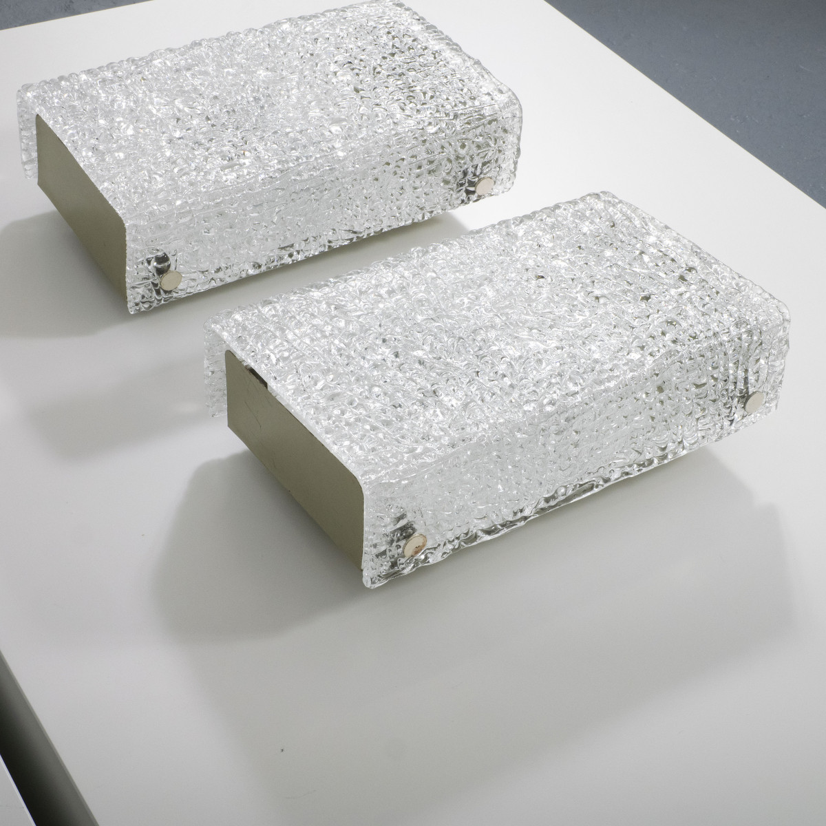 Pair of ice glass sconces by Kaiser