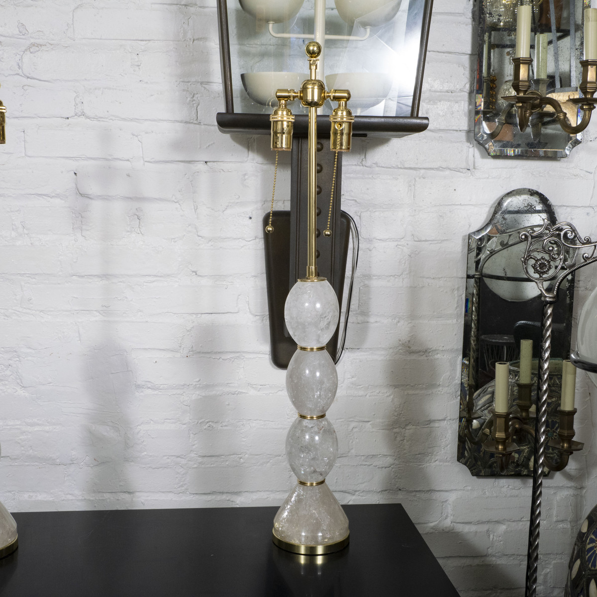 Pair of polished rock crystal table lamps with brass hardware.