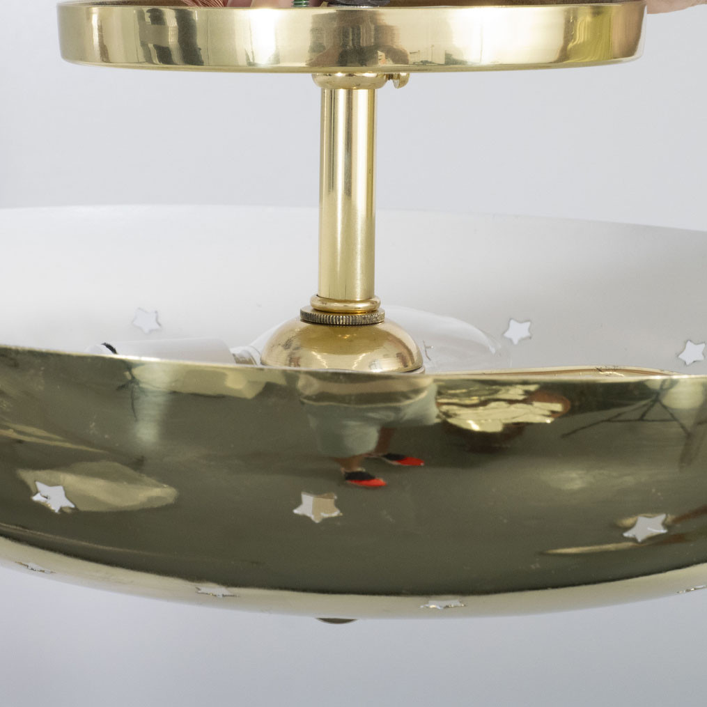 Perforated, polished brass "star" motif flush mount ceiling fixture. UL certified.