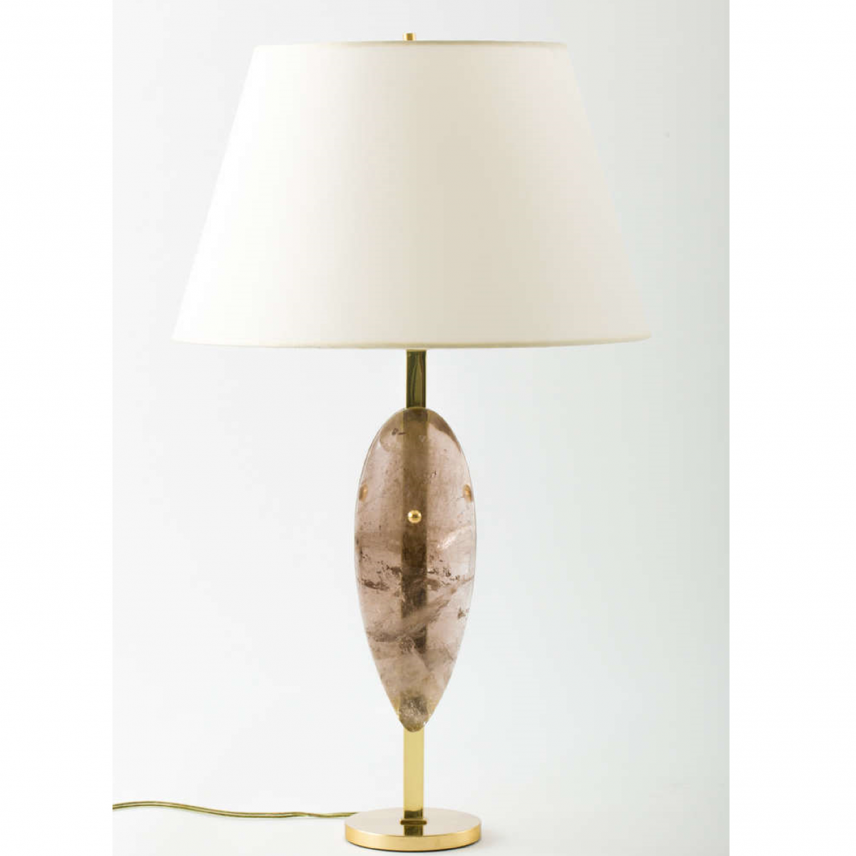 Smoky Quartz Crystal and Brass Teardrop Table Lamps