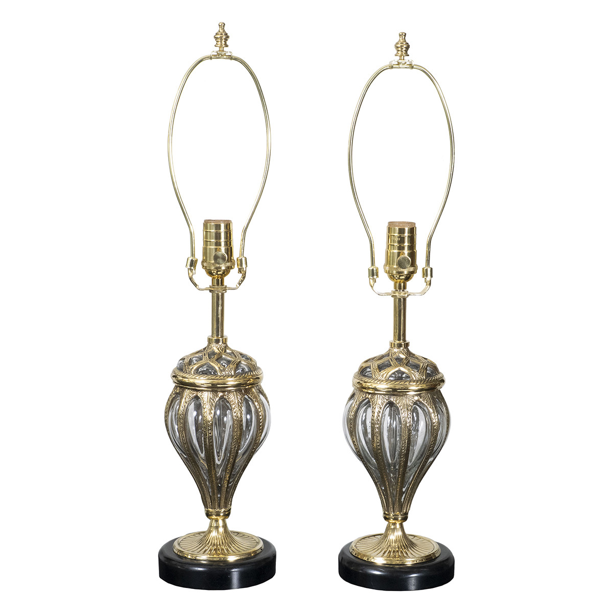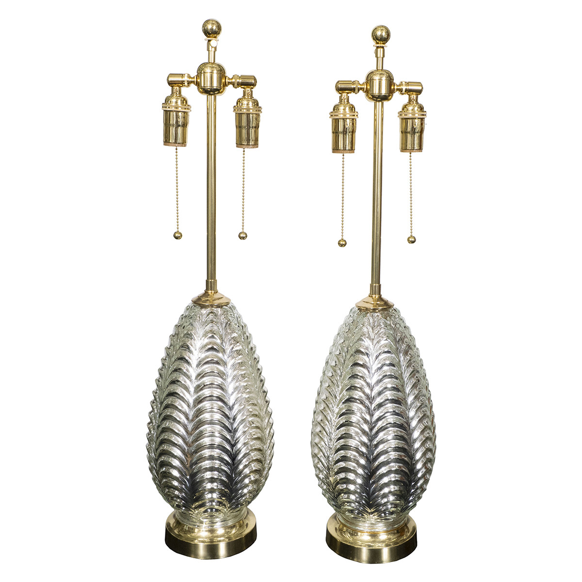 Pair of Hollywood Regency Mercury Glass Diamond Pattern Lamps