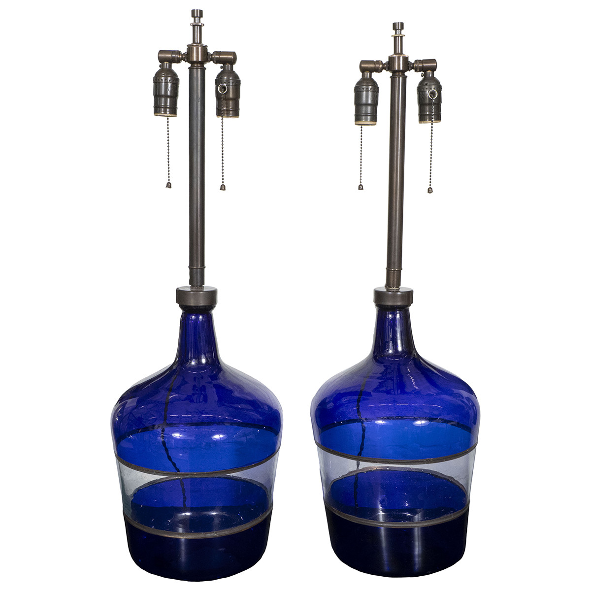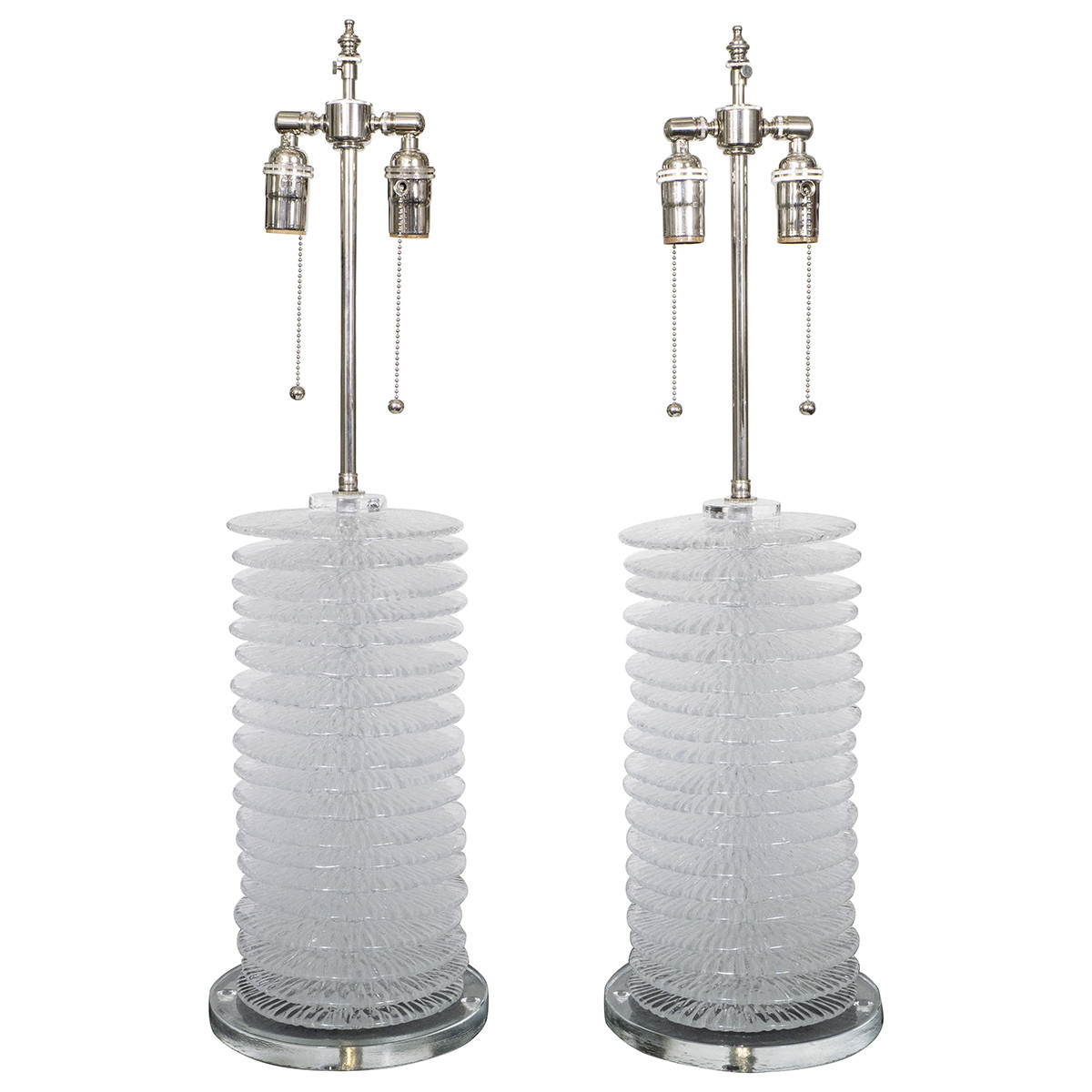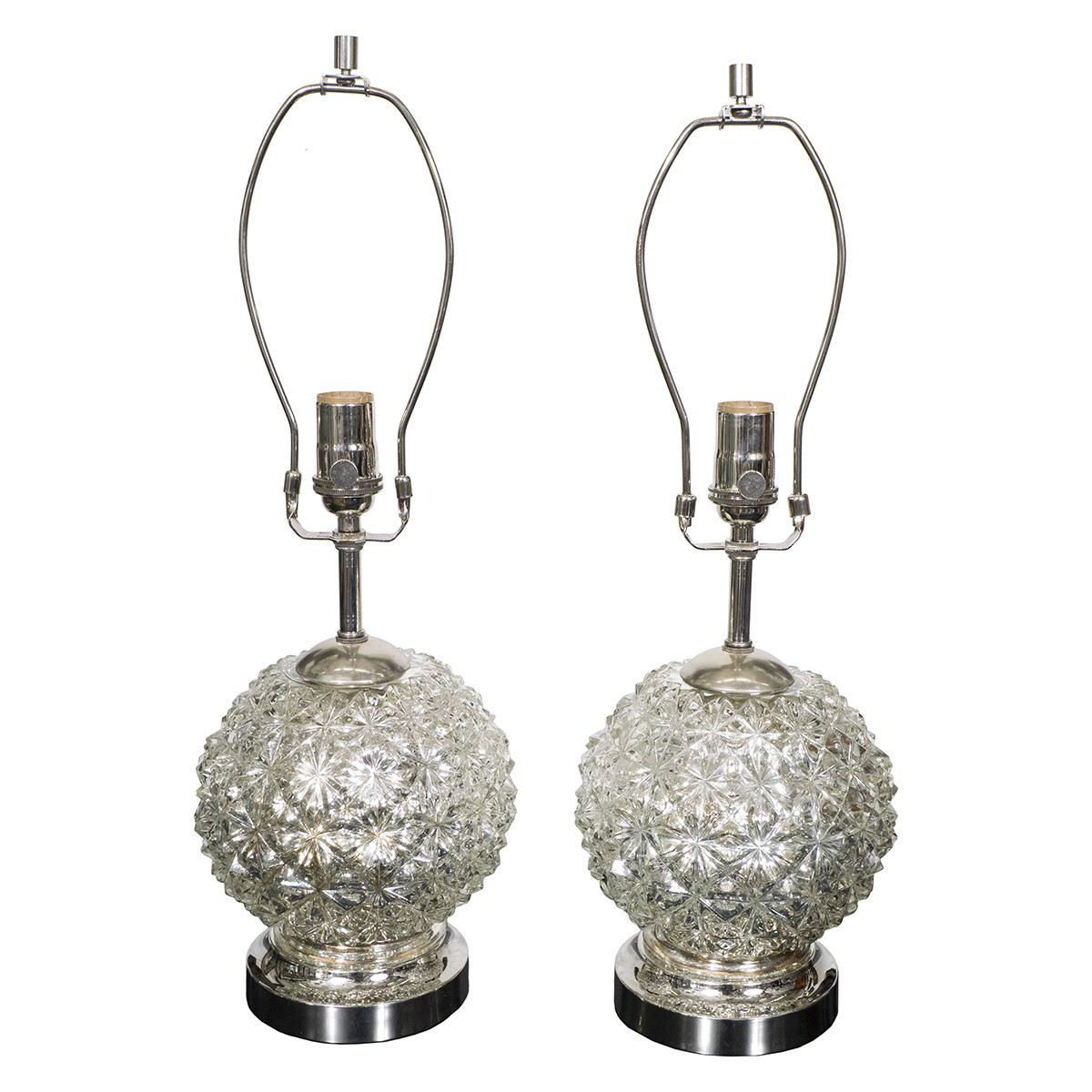 Pair of Mercury Glass Bubble Cylinder Lamps