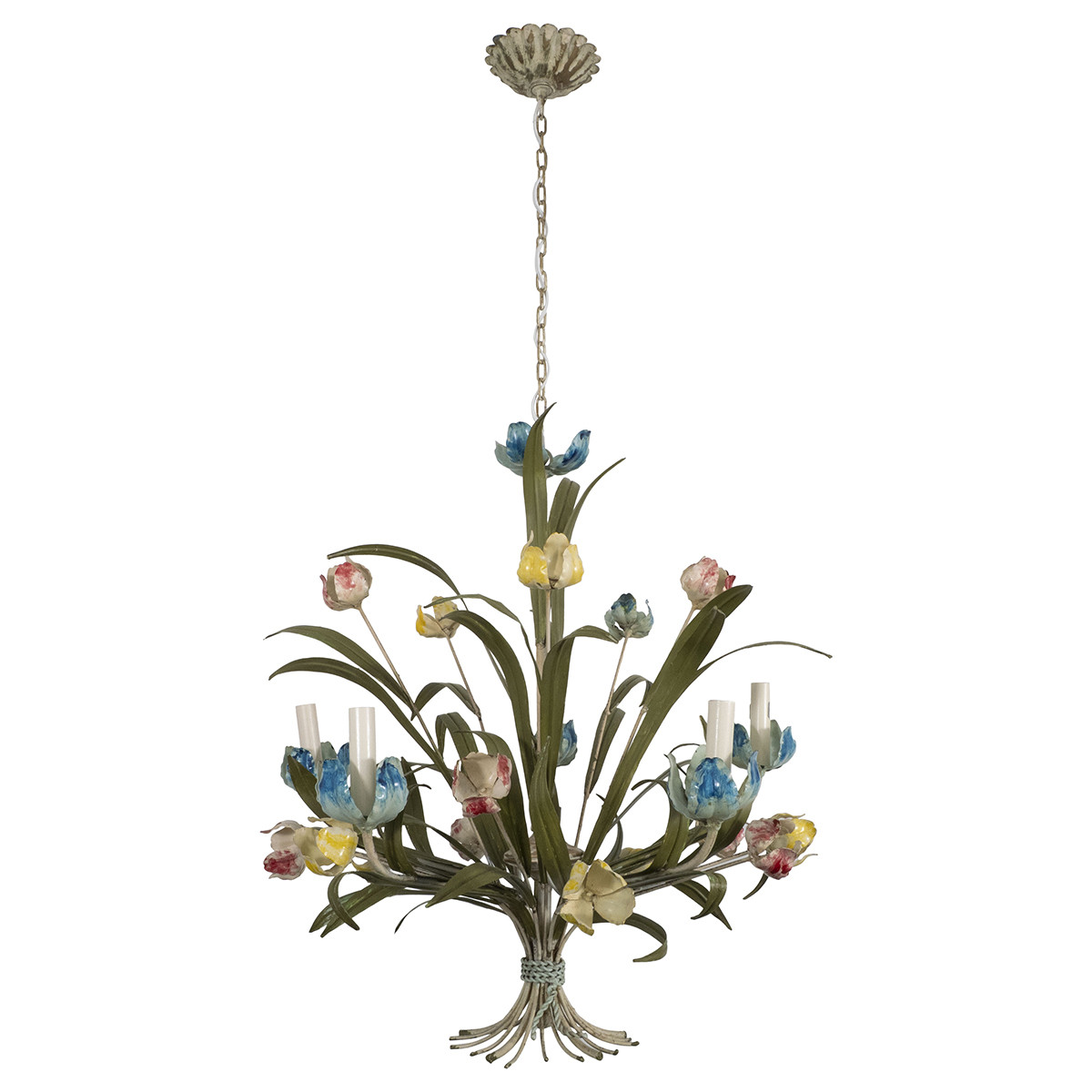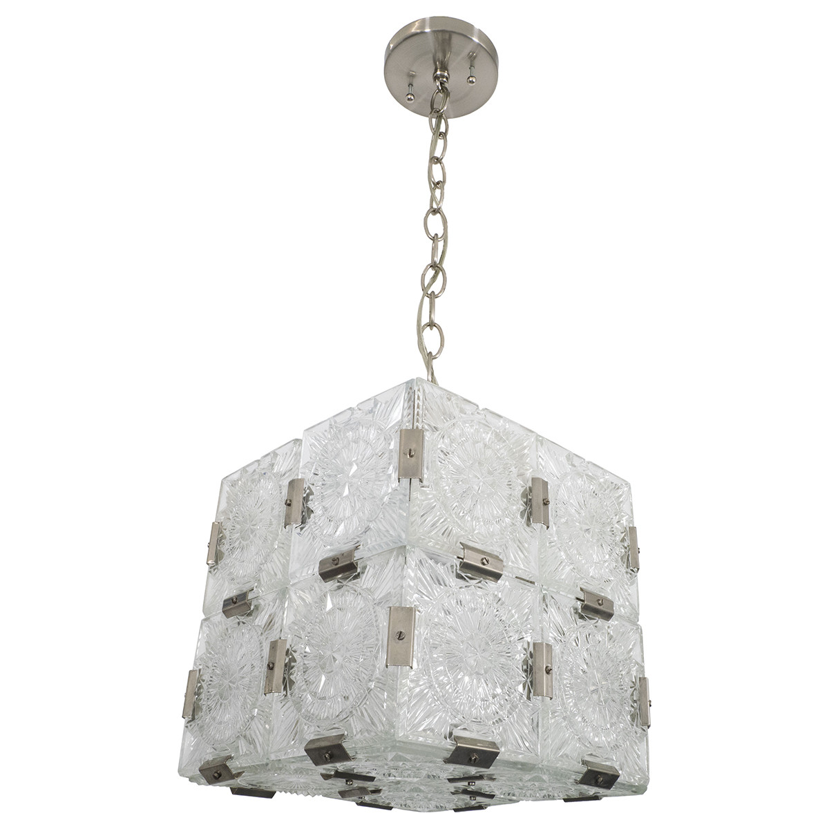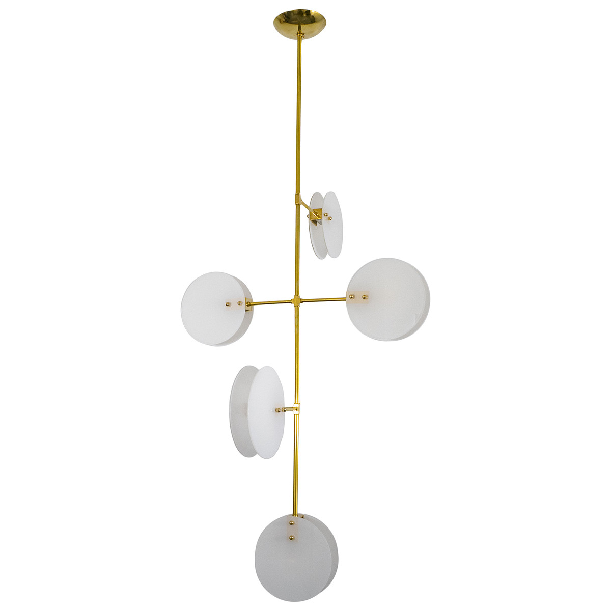 Sputnik style chandelier featuring multicolor acid etched glass disks
