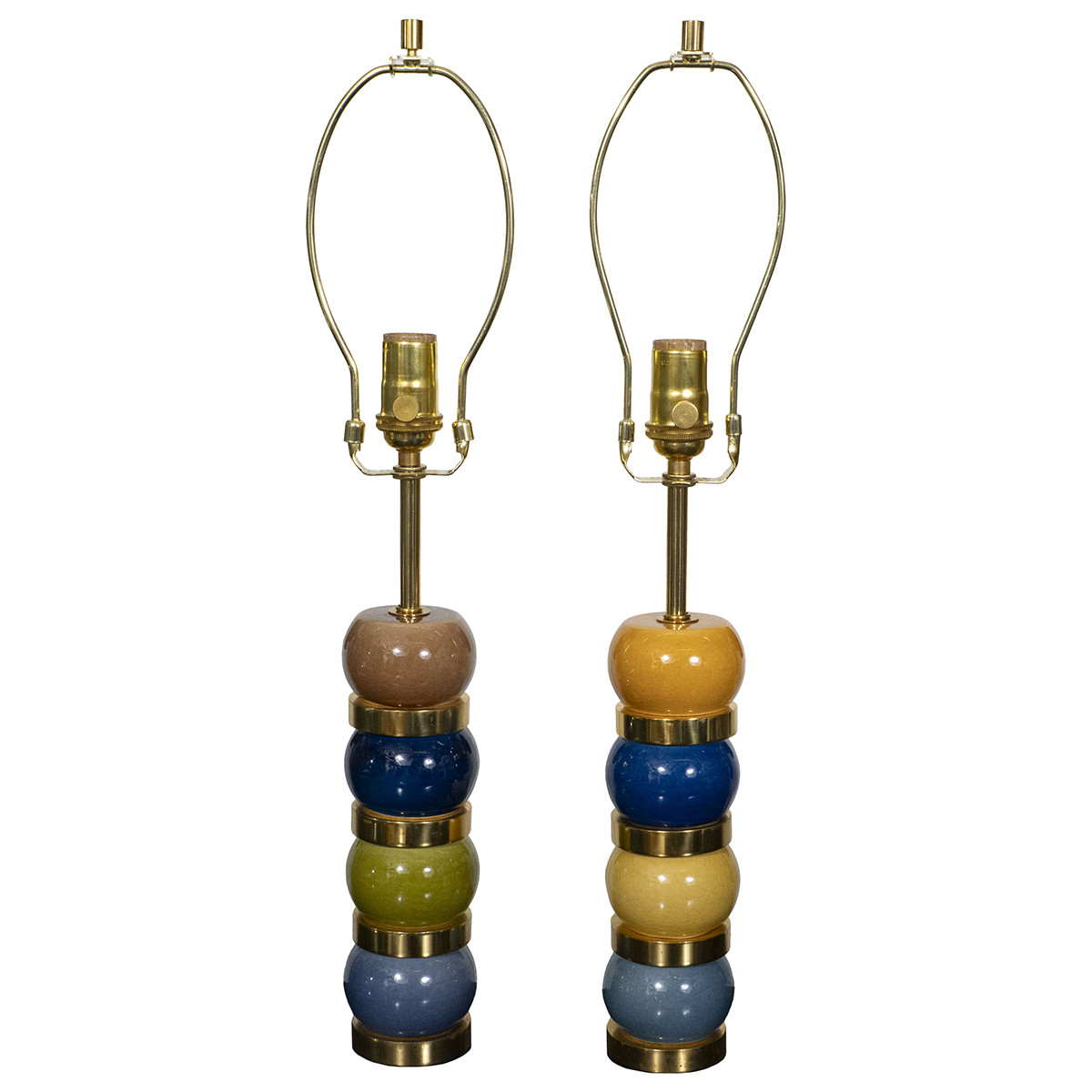 Mid-Century Modern Italian Ceramic Lamps with Leaf Motif