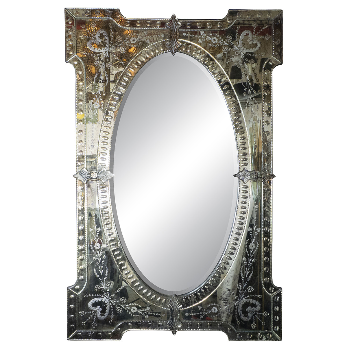 Etched and scalloped glass Venetian mirror