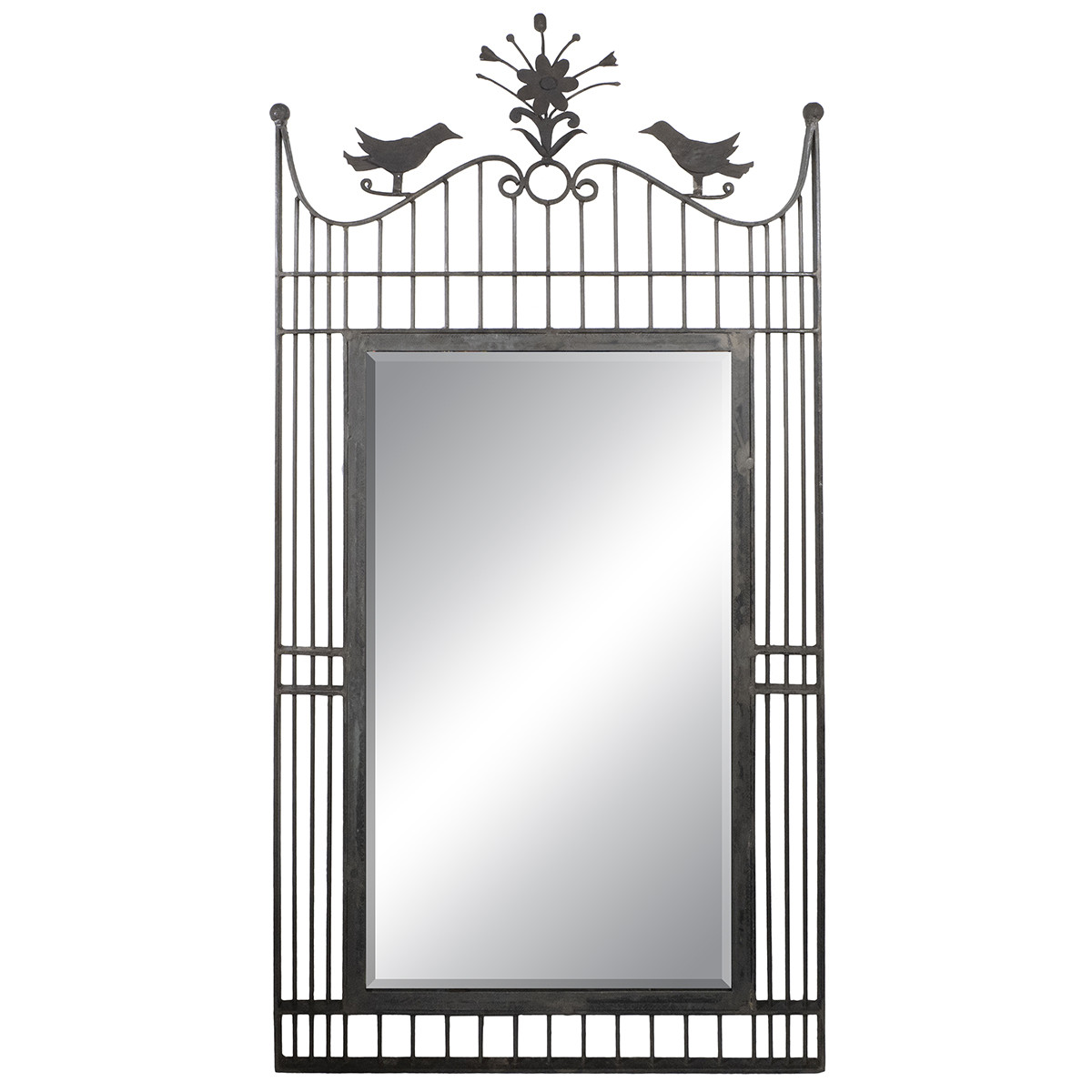 Wrought iron mirror with bird and flower motif